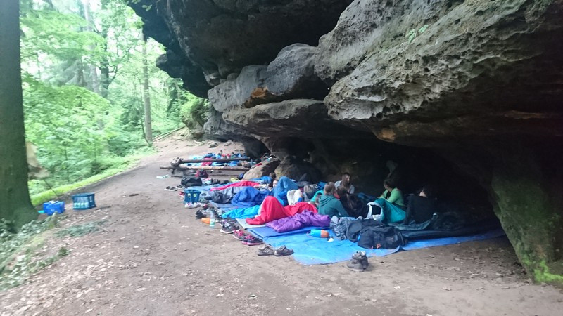 Am nächsten Tag packten wir unsere sieben Sachen zusammen und wanderten zum Pfaffenstein. Dort kletterten wir eine Felswand hinauf, zwängten uns durch eine sehr enge Höhle und kochten unser Mittag. Als wir wieder am Zeltplatz ankamen, freuten sich alle auf die Duschen und die Toiletten.