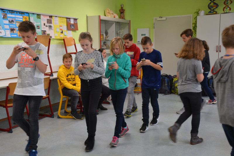 Die Schüler setzen sich mal spielerisch, mal pantomimisch, mal im Rollenspiel, mal mit und mal ohne Requisiten mit verschiedenen Aspekten auseinander. Vom geräuschlosen Kreisspiel über das sachliche Gegenüberstellen von Argumenten für und gegen Handys bis hin zum Skandieren von Schlachtrufen war alles geboten. Es war interessant zu sehen, wie die Stimmung plötzlich wechselte, wenn sich ein erst harmlos erscheinendes Spiel als Brücke zum ernsten Thema des Cybermobbings herausstellte. Die Schüler konnten dazu Gedanken und in einigen Fällen bereits sehr reflektierte eigene Überlegungen mit einbringen. Nach diesem interessanten Vormittag des gemeinsamen Workshops, der viel zu schnell vorbei ging, dürfen die Schüler jetzt gespannt sein, was sie im Theater erwarten wird.