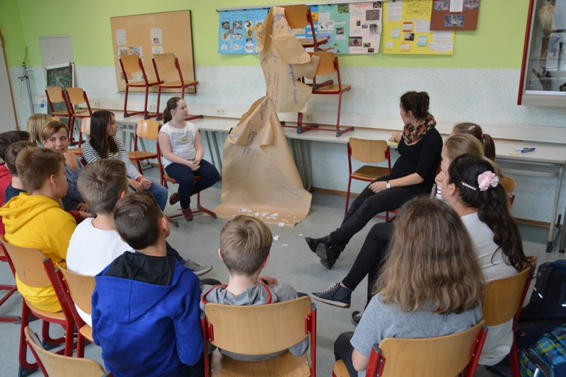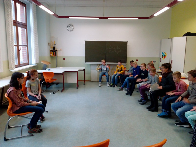 Die Inhalte dafür entstehen insbesondere durch die Erfahrungen, die die Schüler in die Workshops einbringen. Im Februar kommt dieses Stück auf die Bühne und wird von allen sechsten Klassen besucht. Auf Anregung von Frau Neumann, der Klassenleiterin der Klasse 6a, waren für die Workshops die zwei Theaterpädagoginnen Sabine Weitzel und Franziska Rilke in unserer Schule zu Gast.