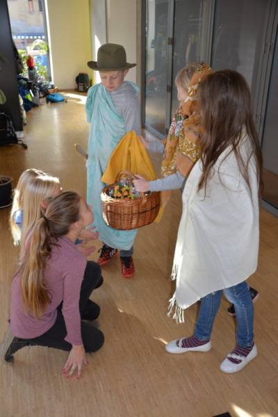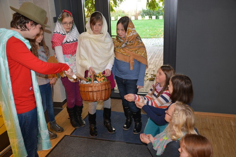 Doch nicht nur den Heiligen, sondern auch den Mitschülern aus den Parallelklassen konnte man begegnen. Bewusst wurden die Gruppen bunt gemischt, sodass Kinder aus den verschiedenen Klassen gemeinsam unterwegs waren.